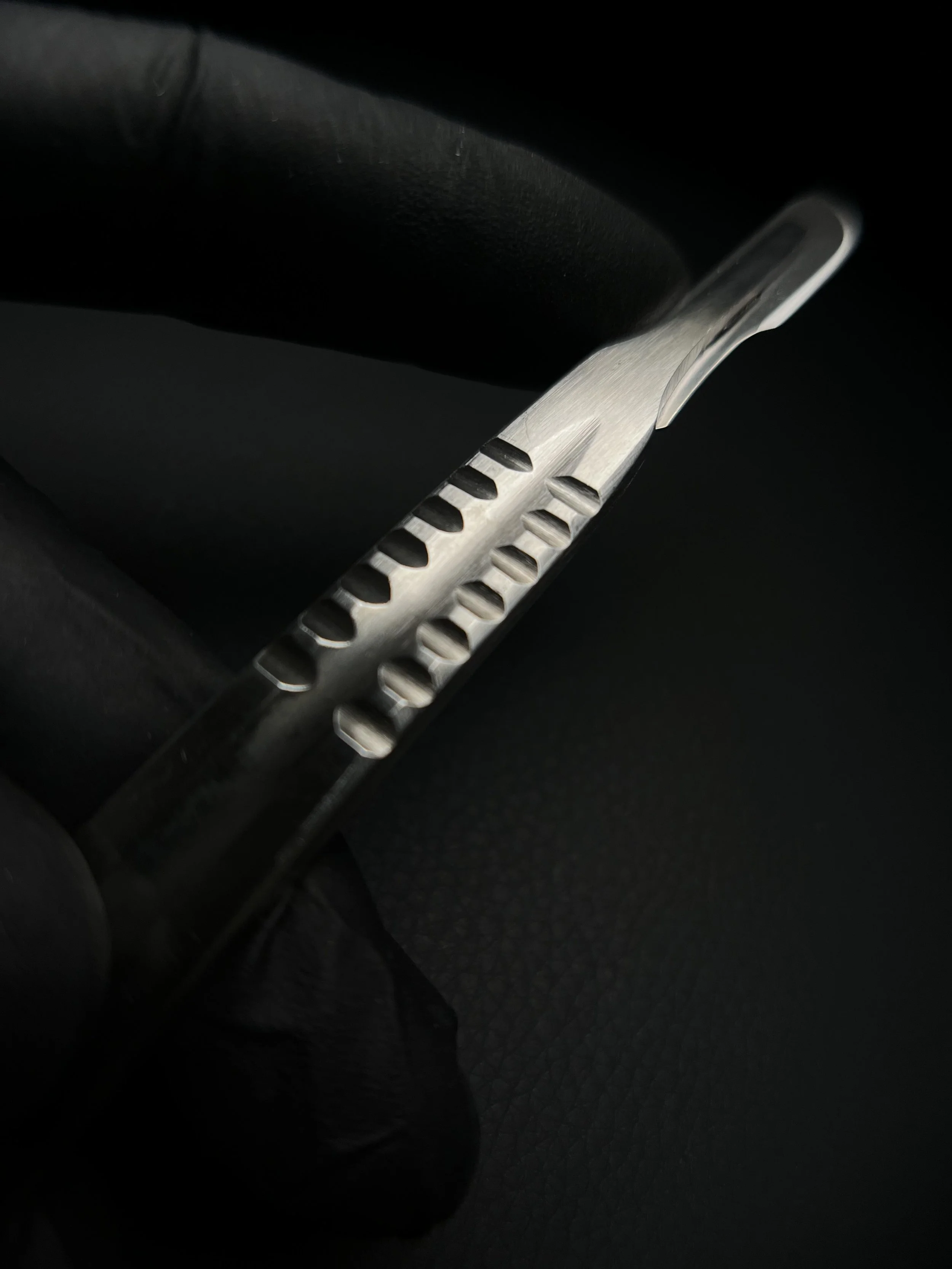 While I would love to offer different forms of scarification, (in studio) I currently only offer cutting/peeling with scalpels with an emphasis on proper asepsis to ensure a clean process.